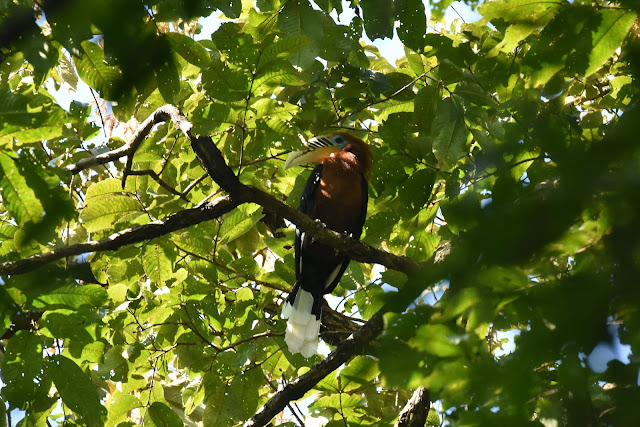 shows me the wreathed, rufous and the brown hornbills, all lifers. Oh, how high